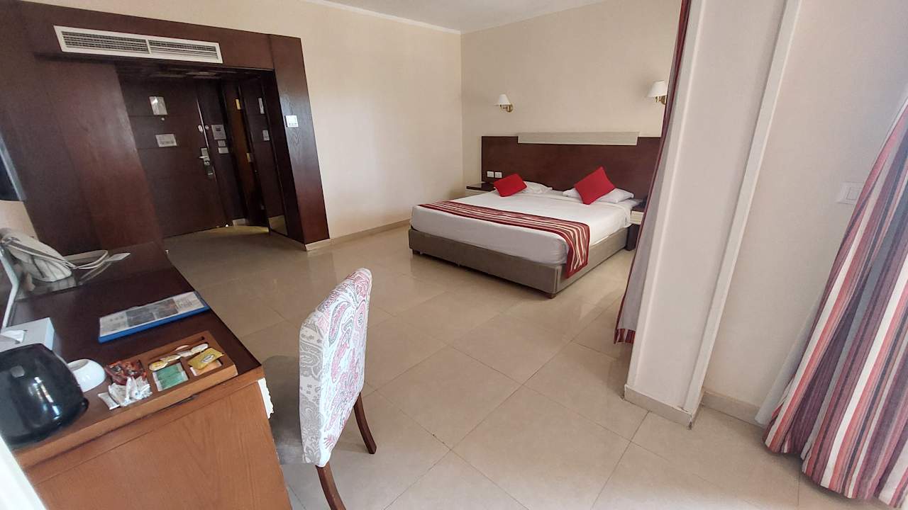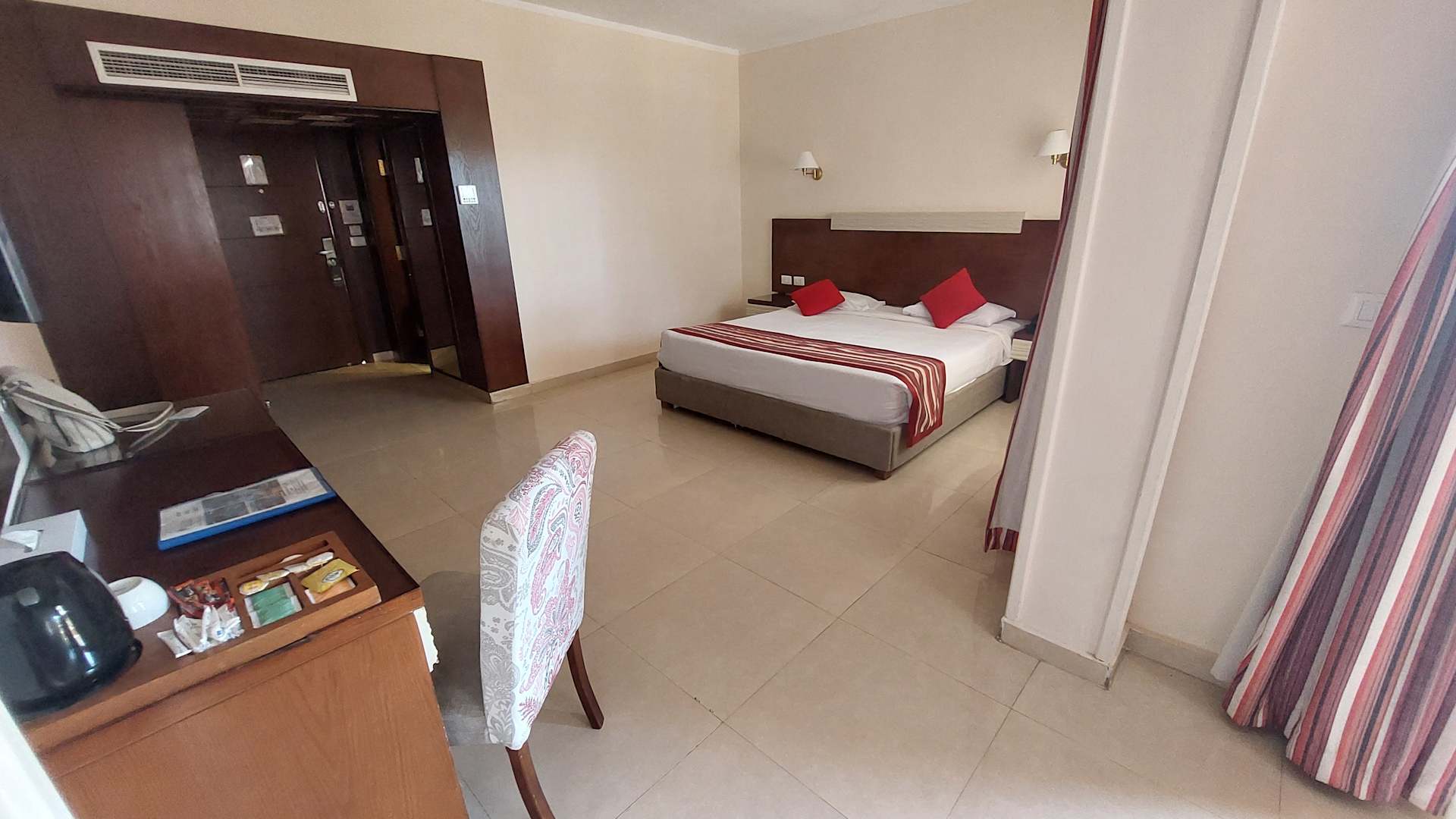 Unser Zimmer war geräumig und hatte auch einen Wasserkocher.