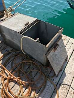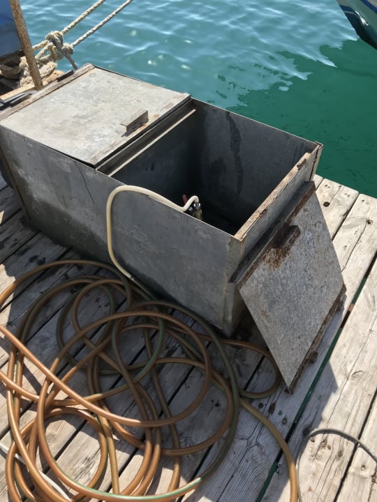 Tankstelle im Meer wo Öl und Diesel ins Meer tropft wo die Urlauber schwimmen