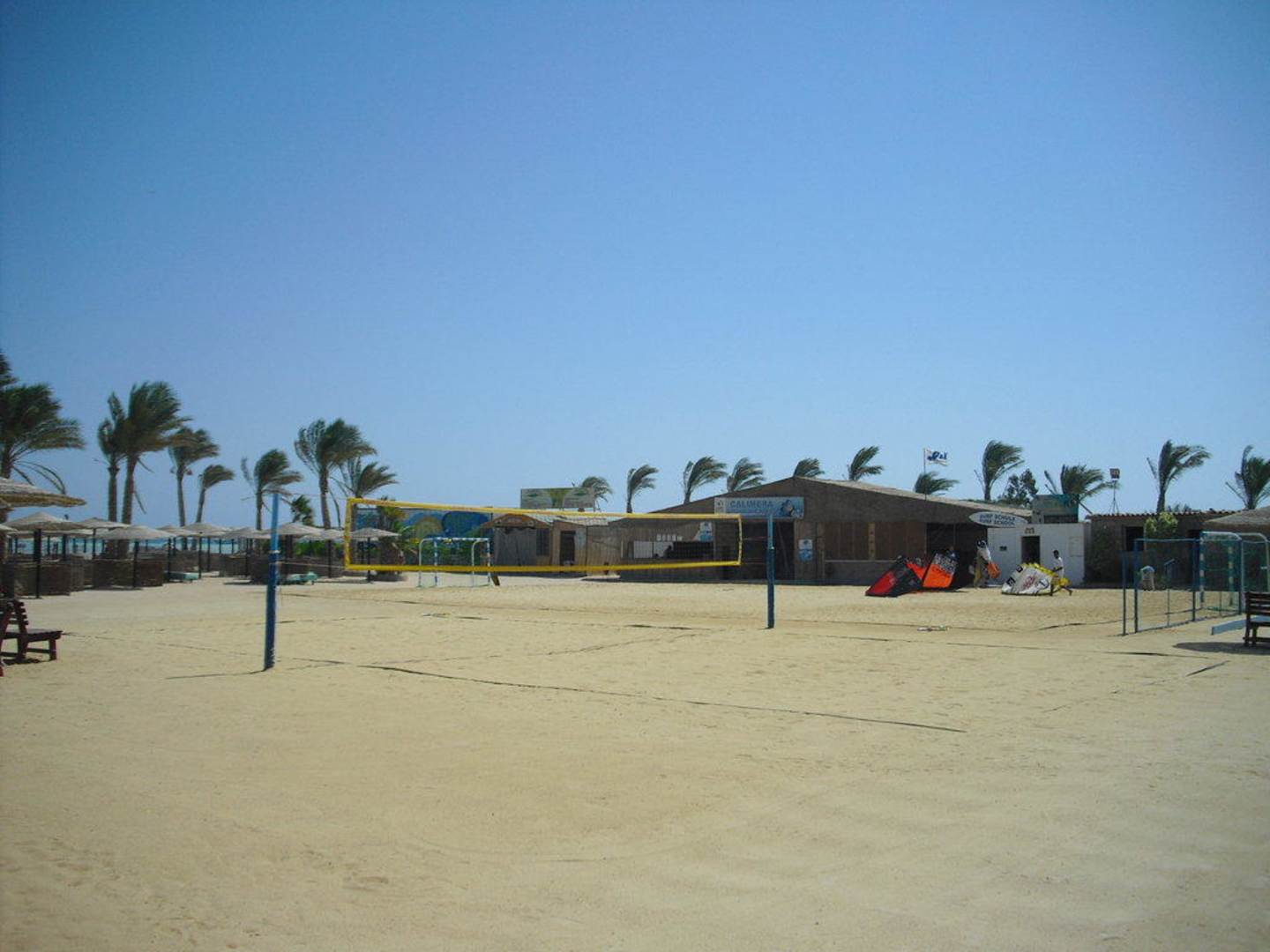 Strand mit Kiteschule