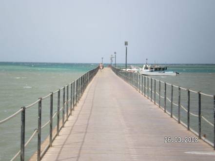 Steg vom Hotel ins Meeram ende des stegs liegen die boote für schnorchelausflüge