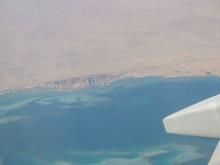LuftaufnahmeCalimera Anlage beim Heimflug. Man erkennt sie an der längsten Poolanlage von Hurghada.