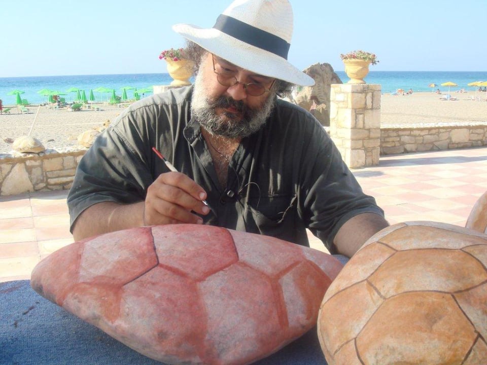 Alexis,unserer MahlerAlexis unser Mahler arbeitet im July & August am Strand vom Hotel.Die Schildkrote (100 stuck) sind nicht genug ,so er macht mehrere.In den nachsten Tagen Alex beginnt das erste Boot.eine rituel Boot vom antique Zeit .Fur den Strand vom Hotel!