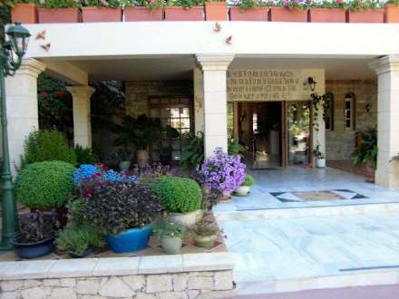 Der Hoteleingang bei Tag