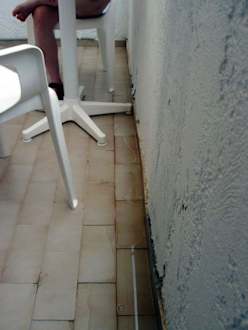 Die dauernde Überschwemmung auf dem Balkon durch die Klimaan