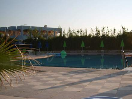 Pool neben der Terrasse nach dem Abendessen