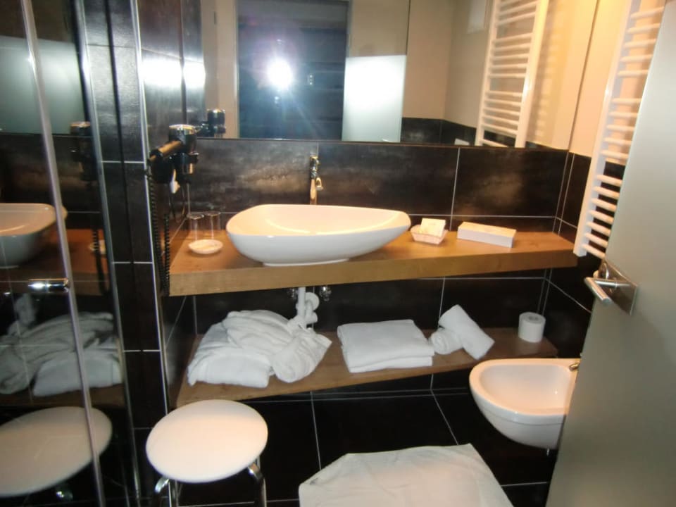 Bad mit einem Waschbecke und reichlich Ablage