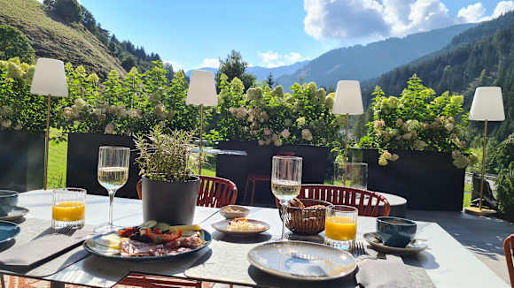 Terrasse mit Blick auf die Berge