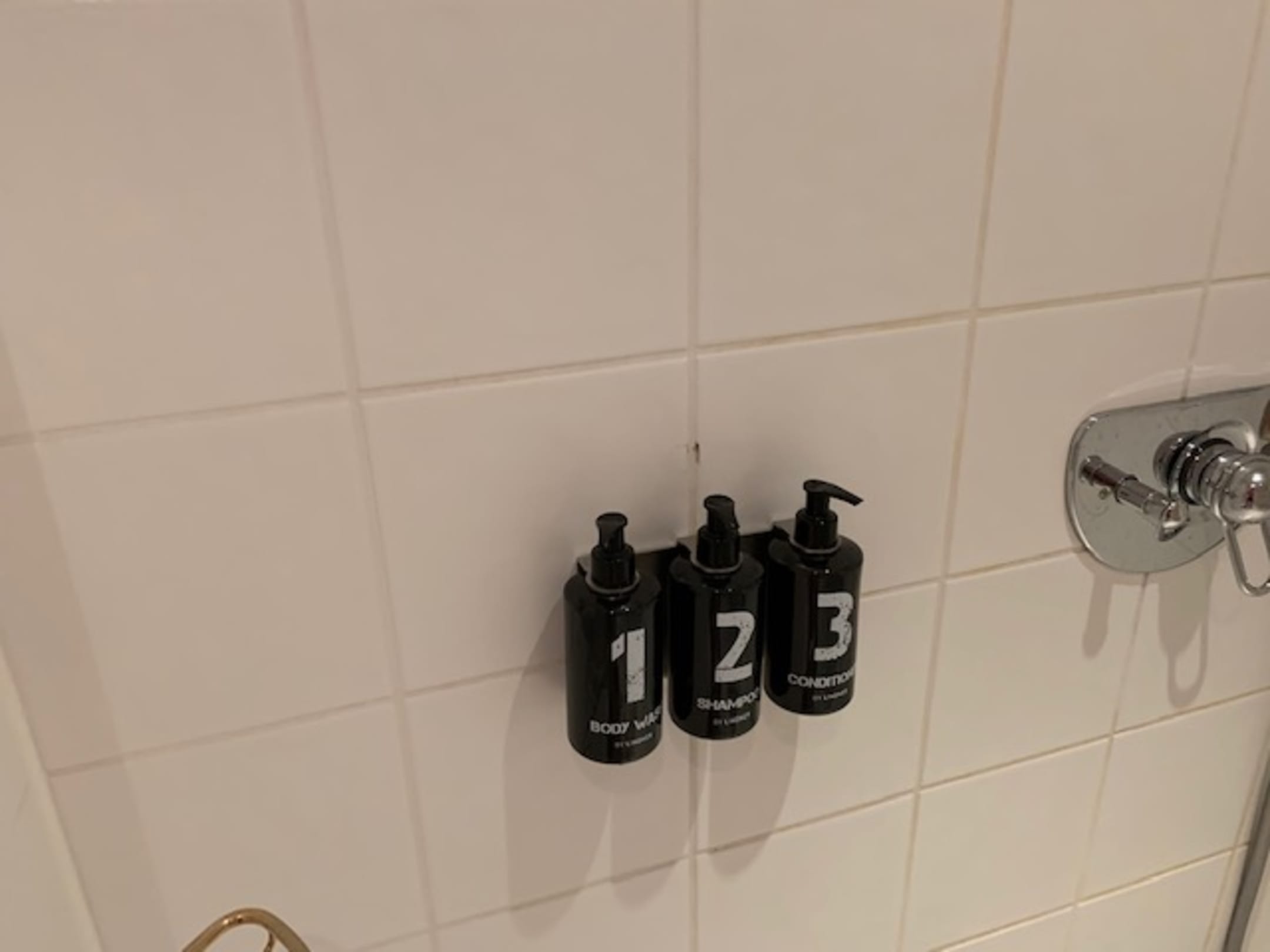 Bohr-/Befestigungs-Löcher in den Wänden von früheren Dusch-Utensilien