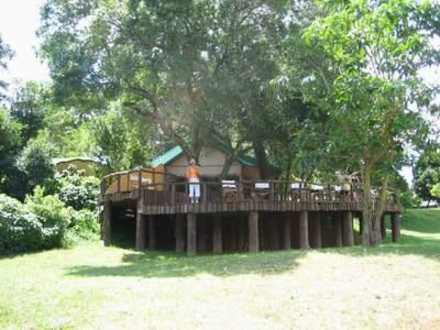 Von hier schaut man den Hippos beim Grasen zu,