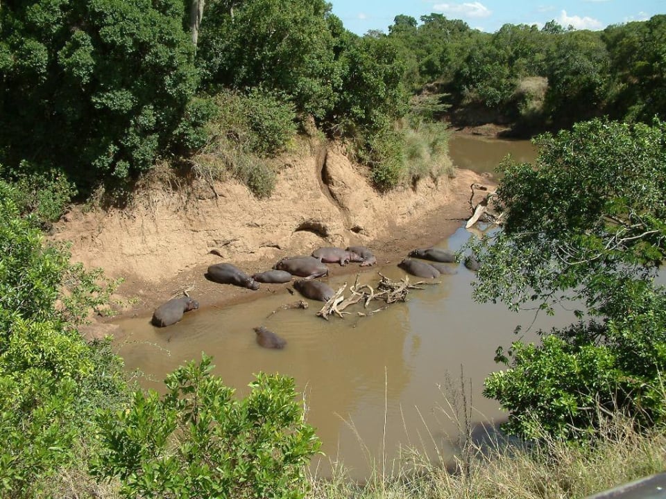 FlusspferdeFlusspferde im Masai Mara Nationalpark - sind in allen Flüssen und Seen zu finden, die im Grasland liegen.