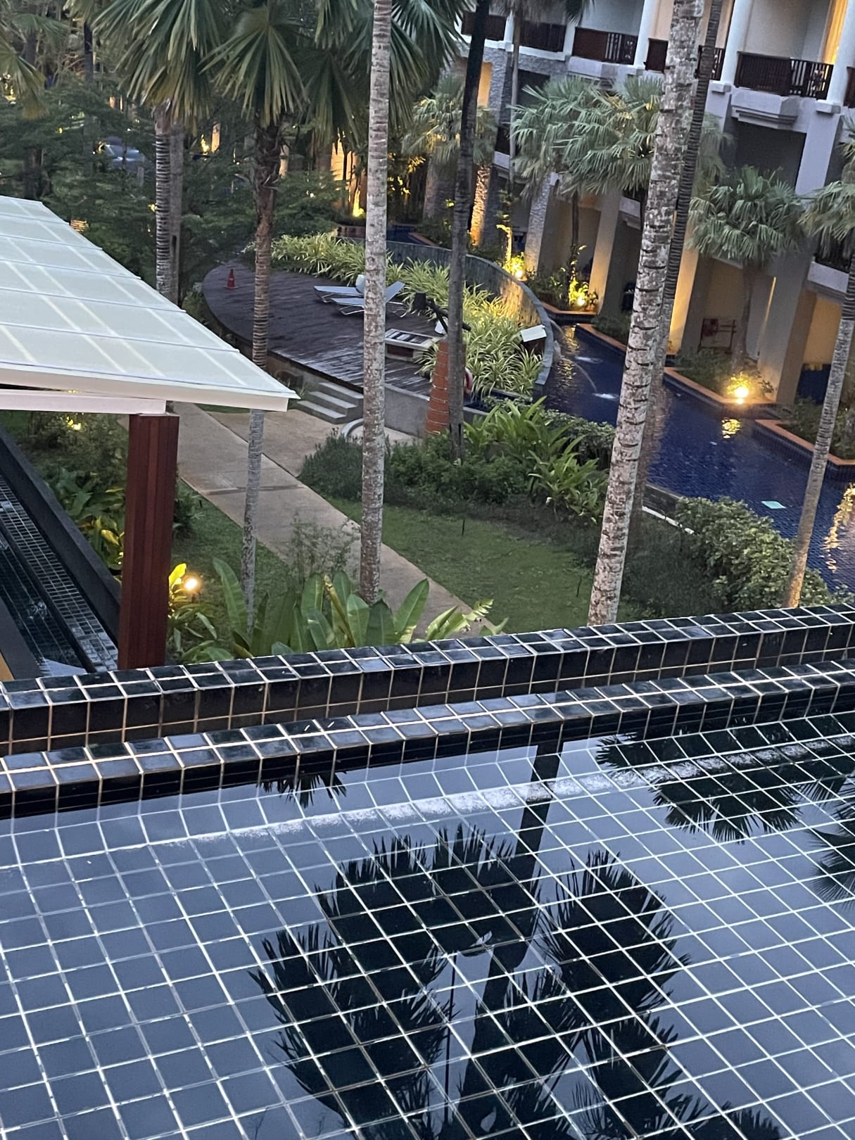 Blick vom Haupthaus/Rezeptionsbereich