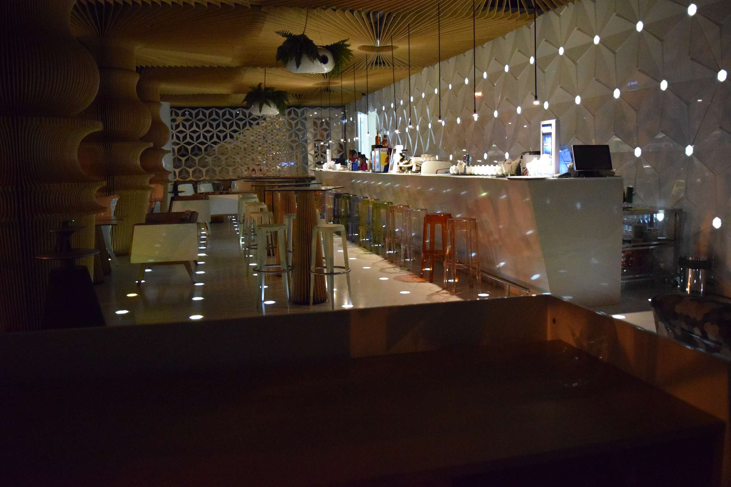 Bar im Erdgeschoss bei Nacht