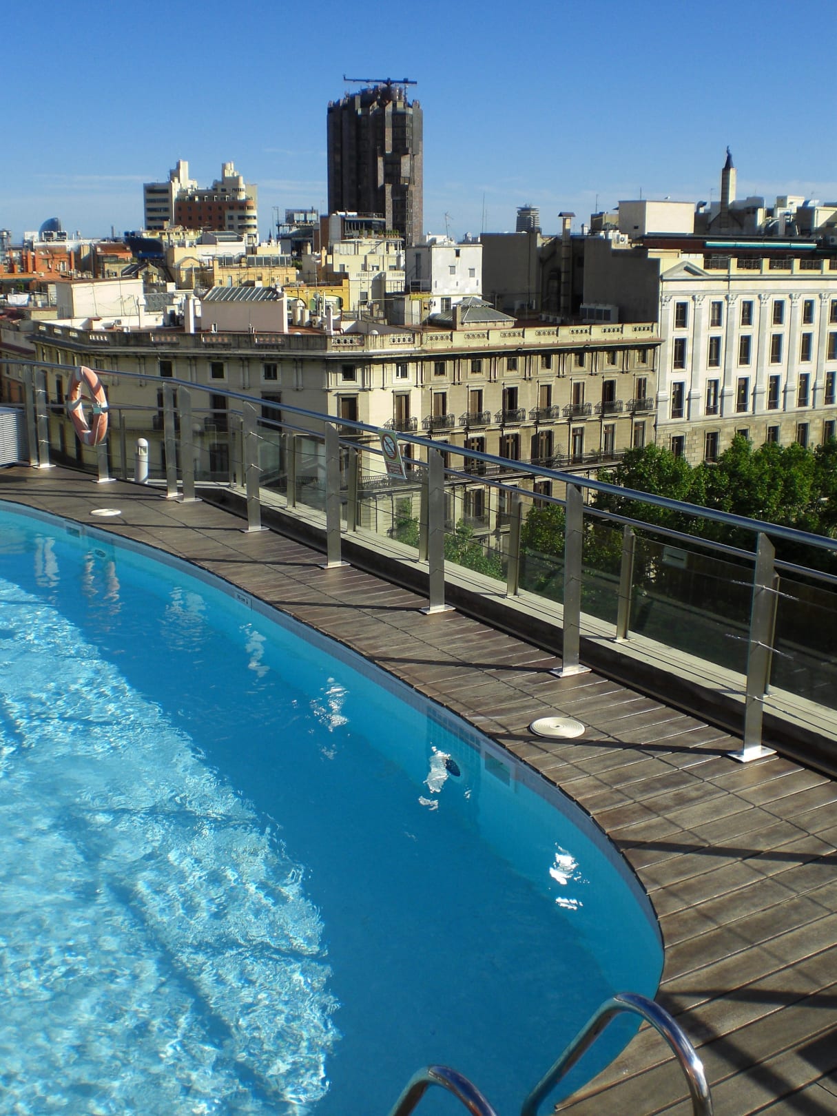 Blick vom Pool auf dem Dach auf die Stadt