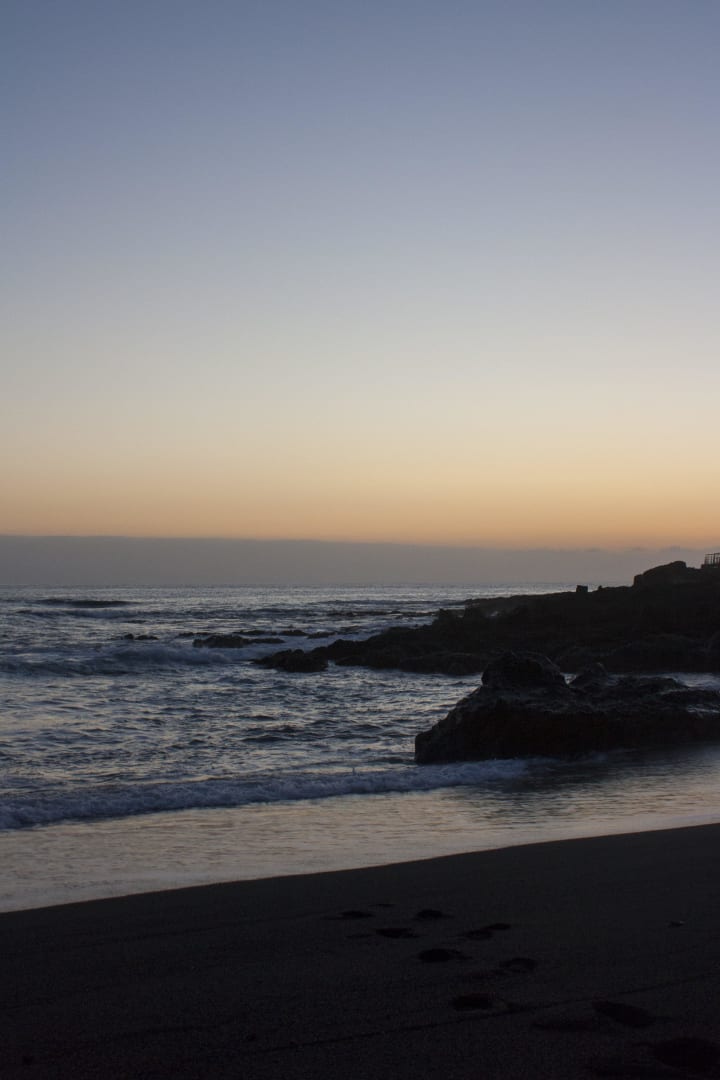 Schwarzer Sandstrand am Hotel