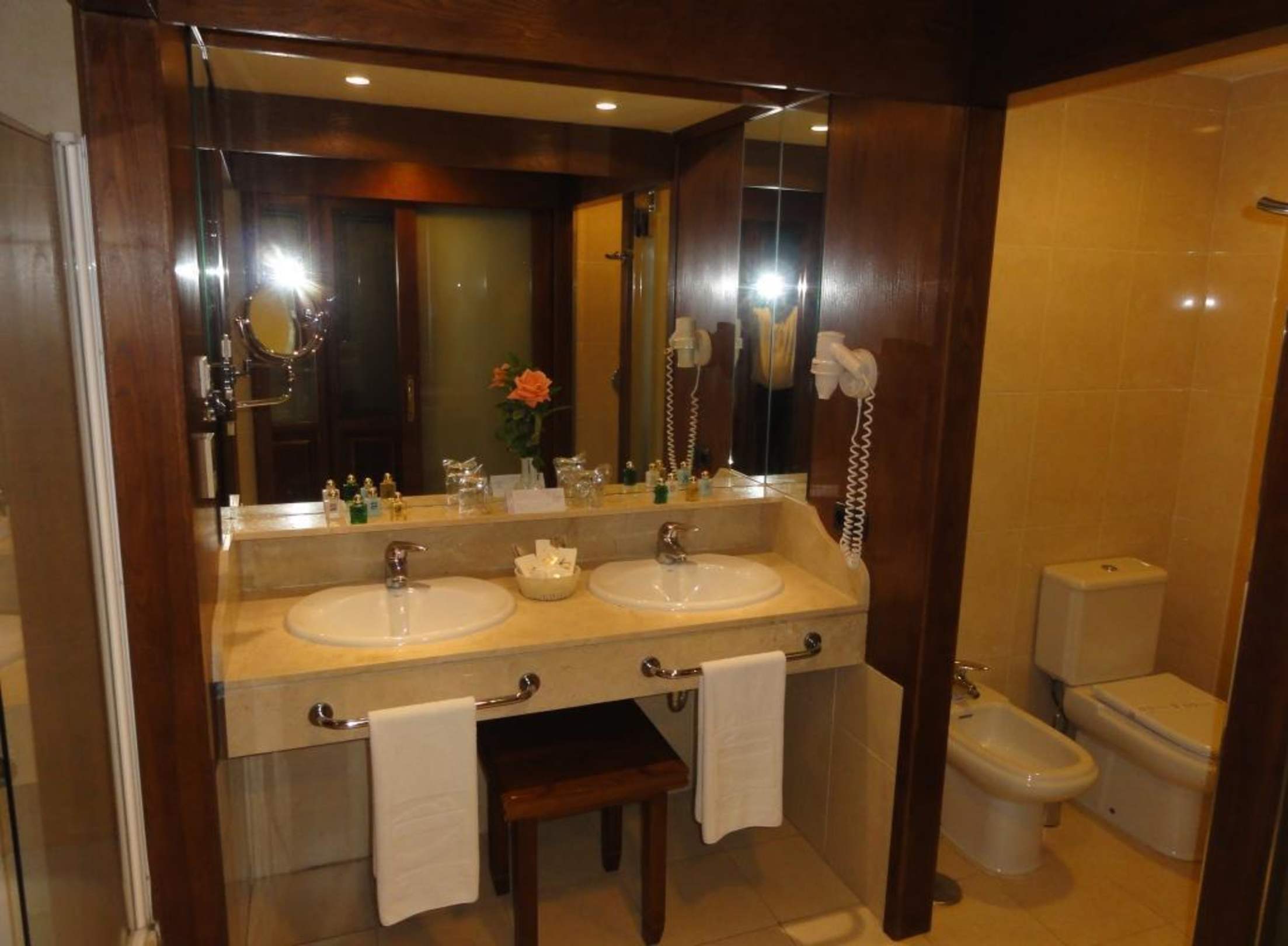 Sehr gut ausgestattetes Badsehr gute Ausstattung: WC&Bidet, Dusche, Badewanne, Doppelwaschbecken. Drei Musikkanäle für romantisches Ambiente.