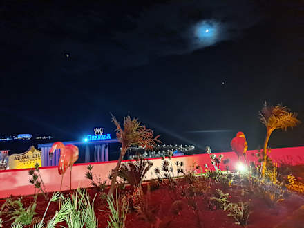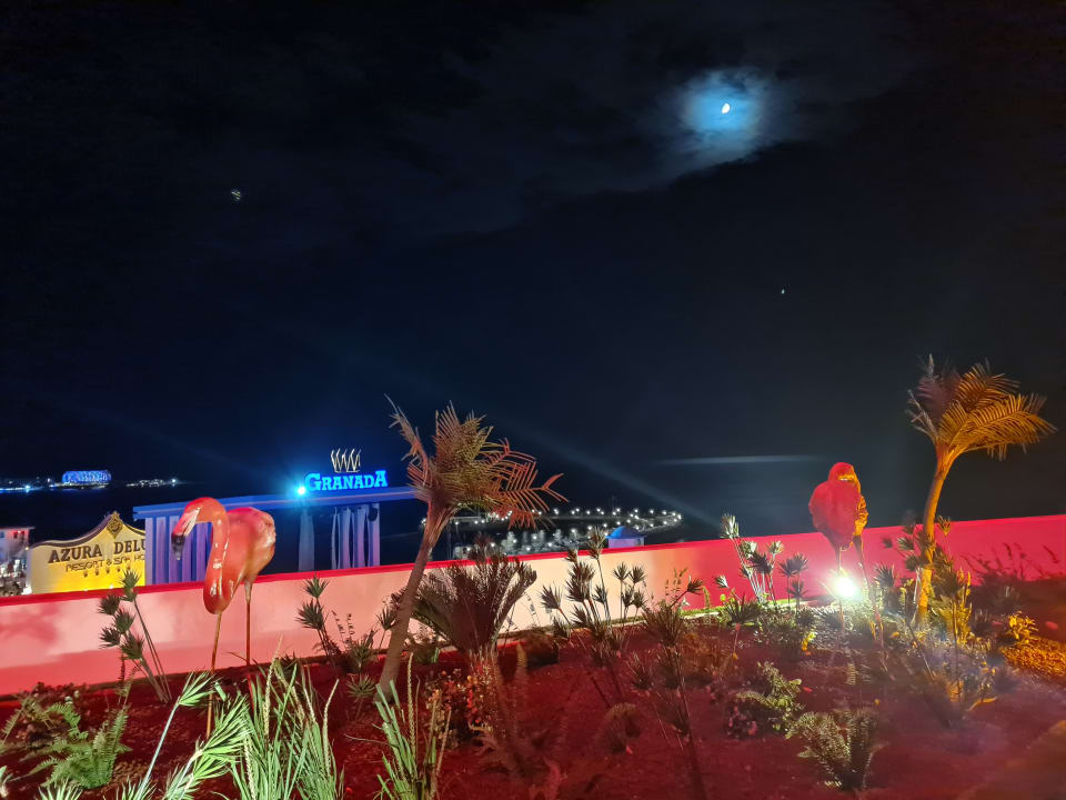 Ausblick vom Zimmer auf das Meer und auch auf die Bühne, wo Abends Shows stattfinden.
