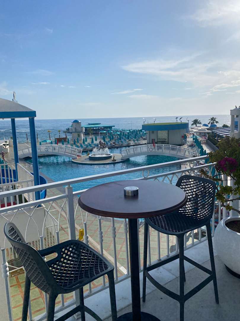 Poolbar mit Blick aufs Meer