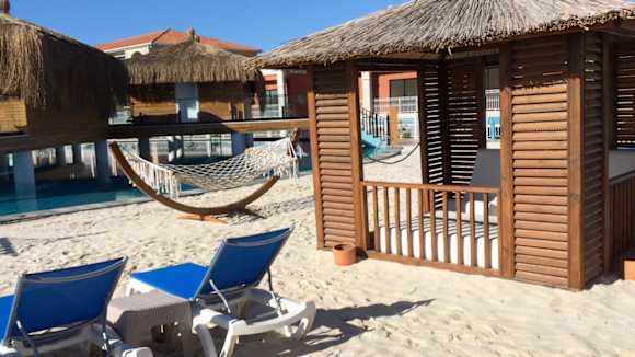 Malediven Strand mit Hängematte und Pavillon