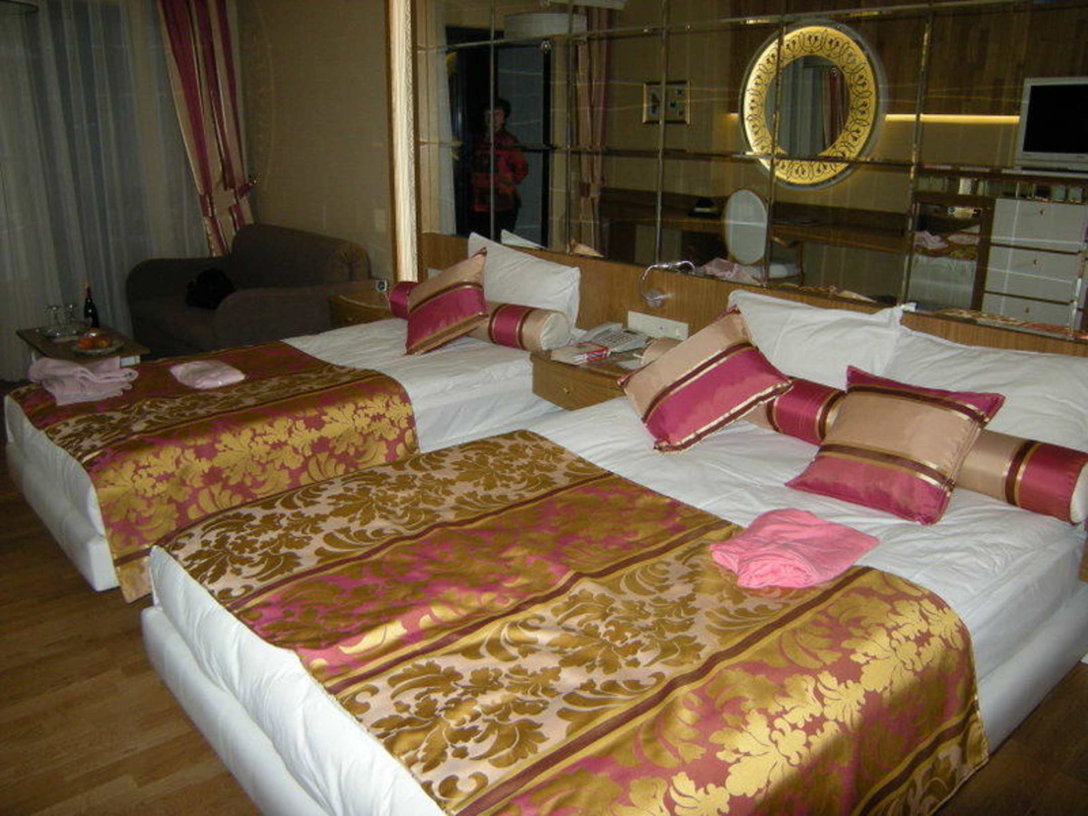 Blick auf die Betten mit Hintergrundspiegel