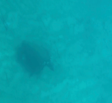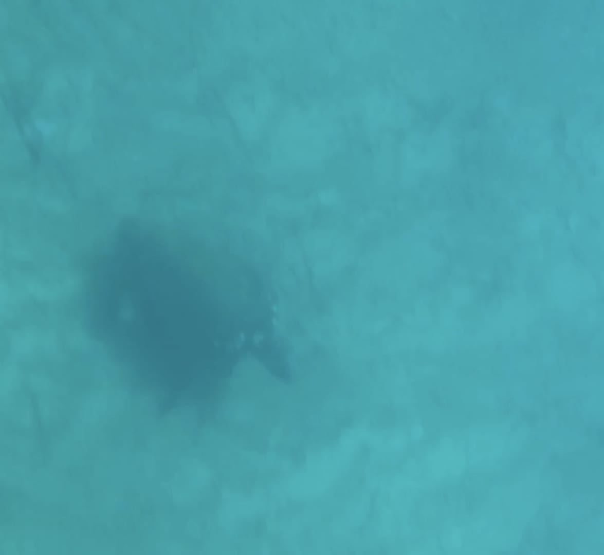 StrandSchildkröte, die wir bewundert haben (leider bewegte sie sich etwa in 12 m Tiefe und wir wollten sie nicht erschrecken).