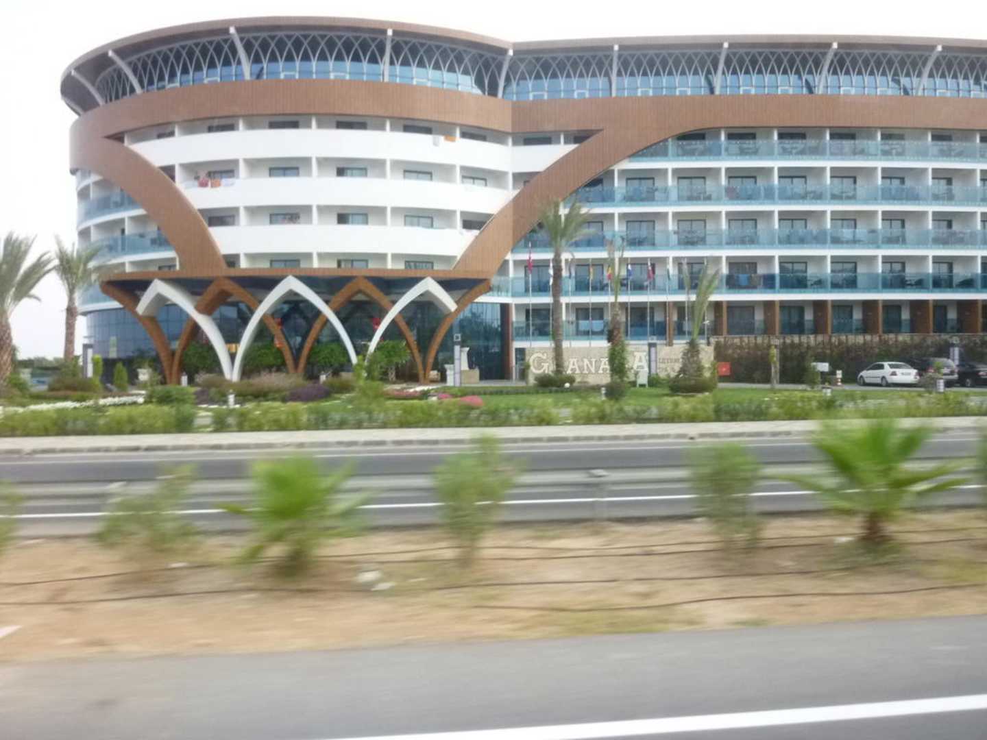 Blick auf das Hotel auf dem Nachhauseweg