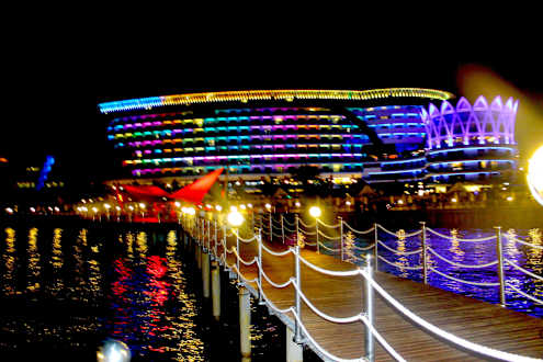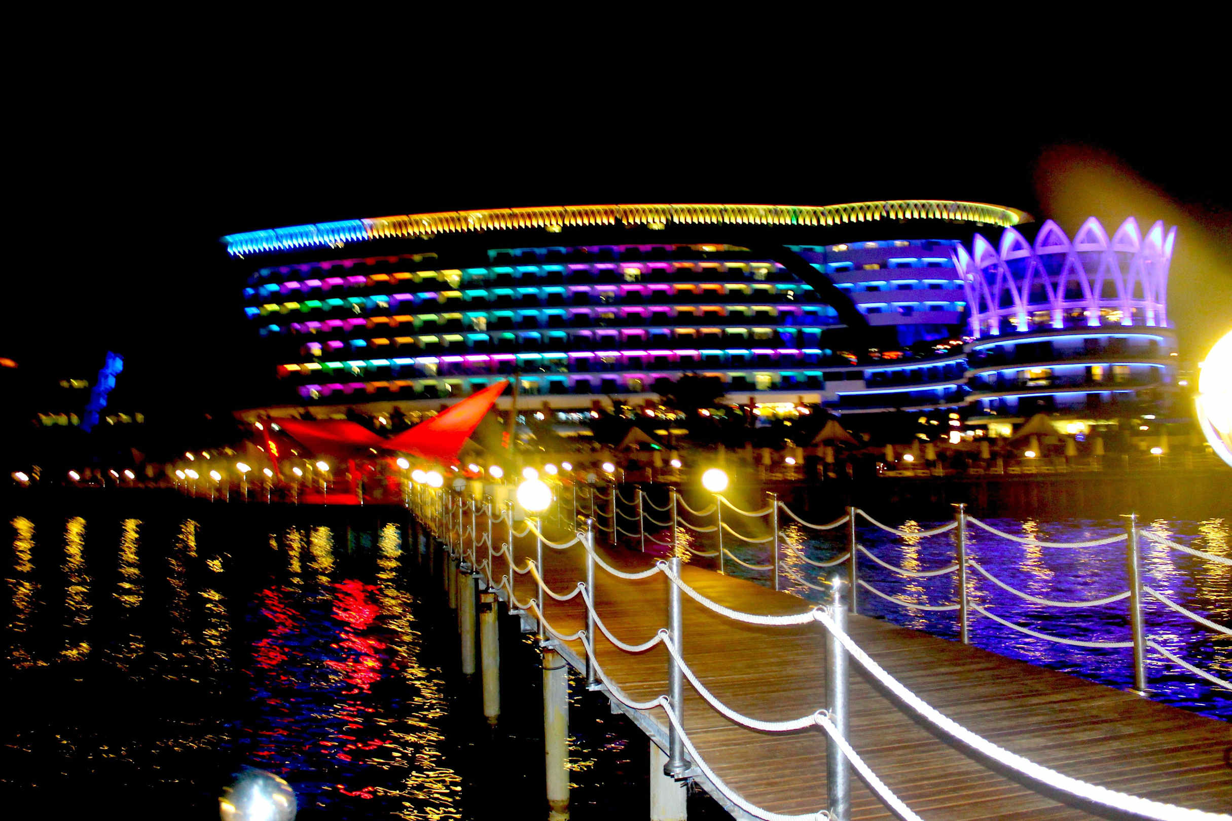 Вид на отель ночью с пирса