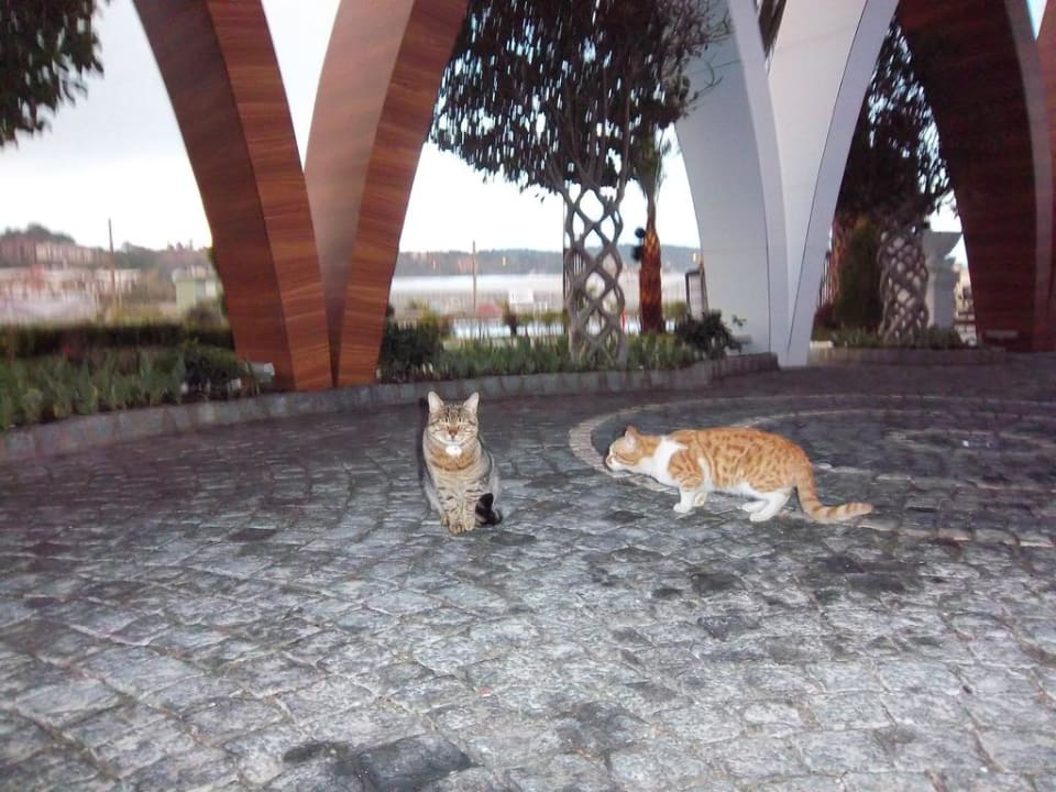 Zwei Dauergäste des Hotels vor dem Eingang