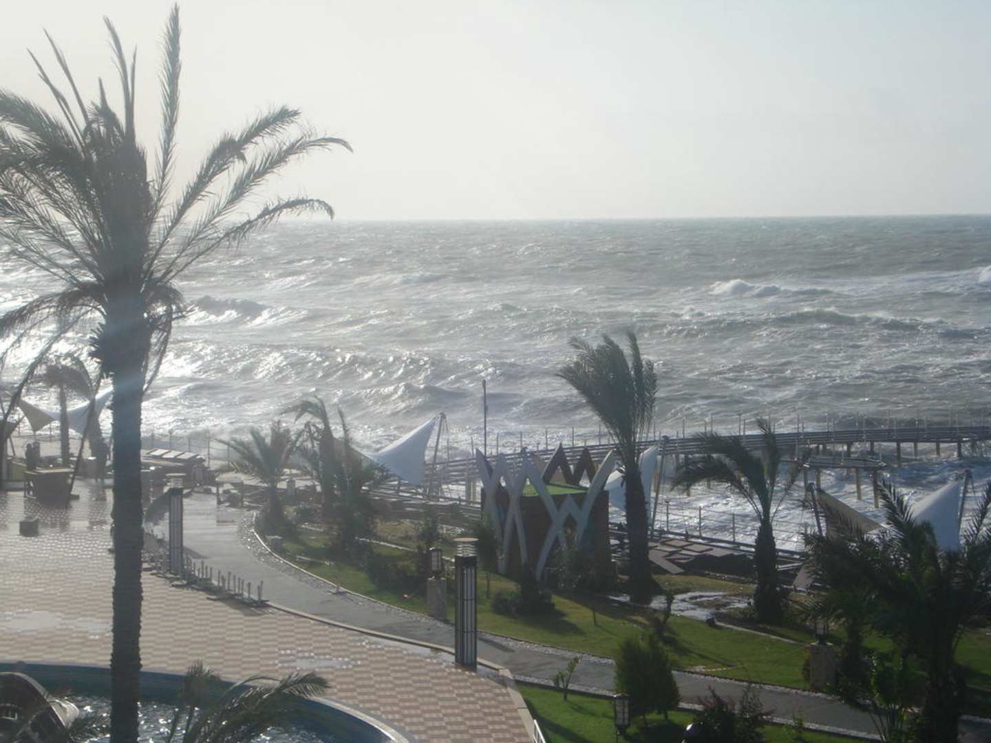 Der Hotelsteg hat den Naturgewalten nicht standgehalten. Hier sieht man, wie hoch die Wellen im Dezember sein können. Nach einem riesigem Gewitter in der Nacht.