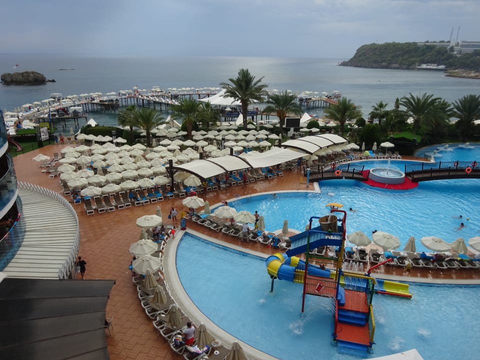Pool (vorn Kinderpool) und Steg aus Sicht der Lobby-Bar