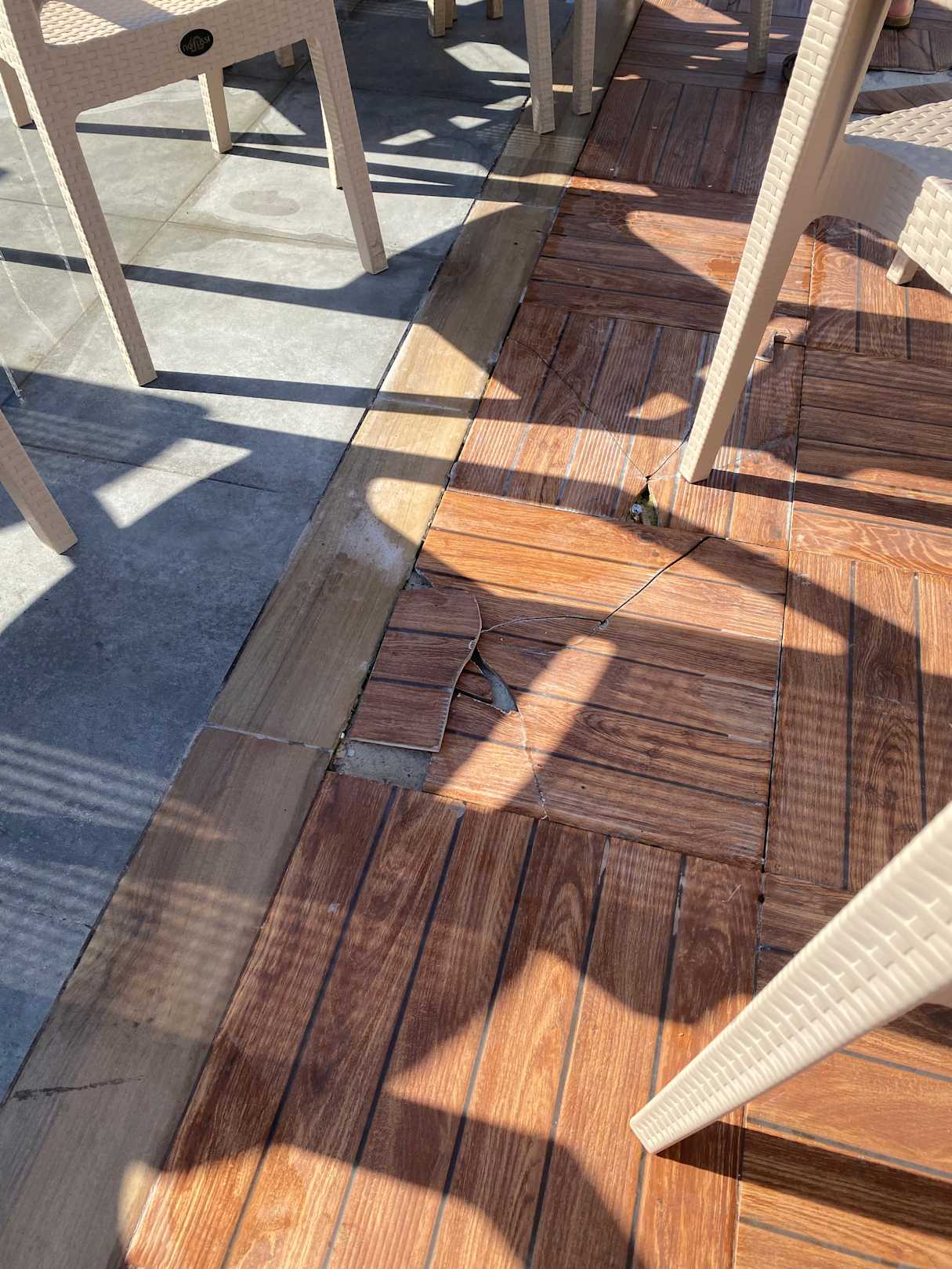 SonstigesAußenbereich mit zig defekten Fliesen. Verletzungsgefahren überall für Kinder und Erwachsene