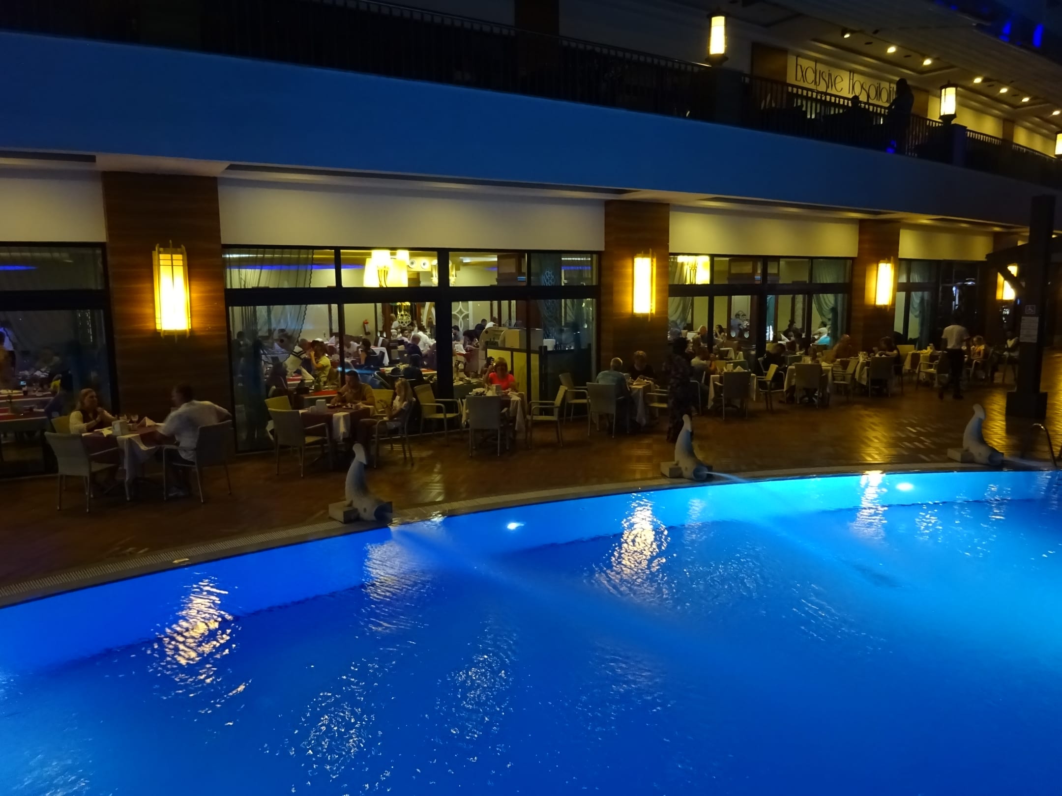 Abends wurden Tische im Poolbereich aufgestellt