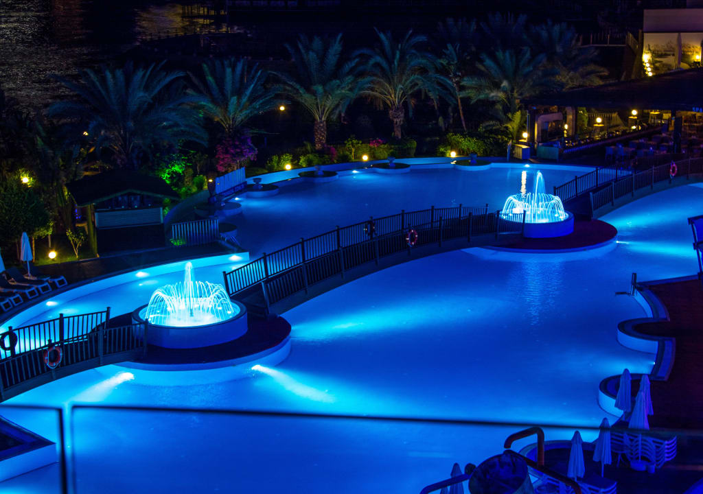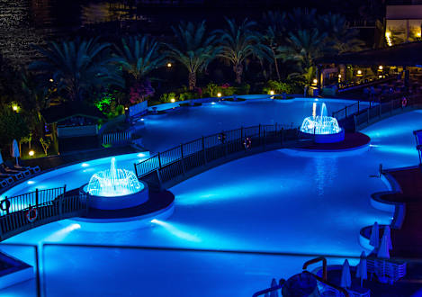 Poolanlage bei Nacht