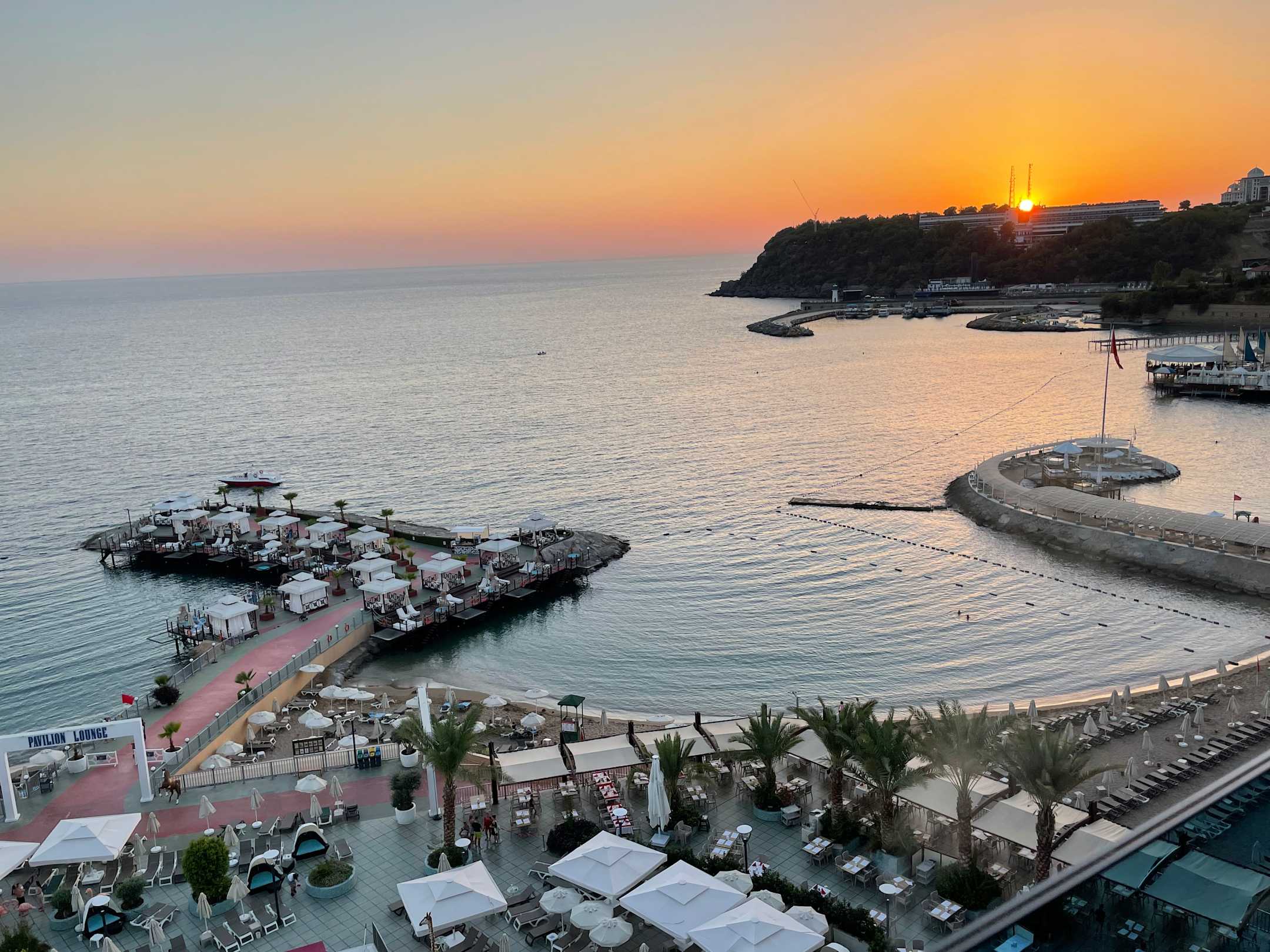 Ausblick vom Balkon. Sonnenuntergang