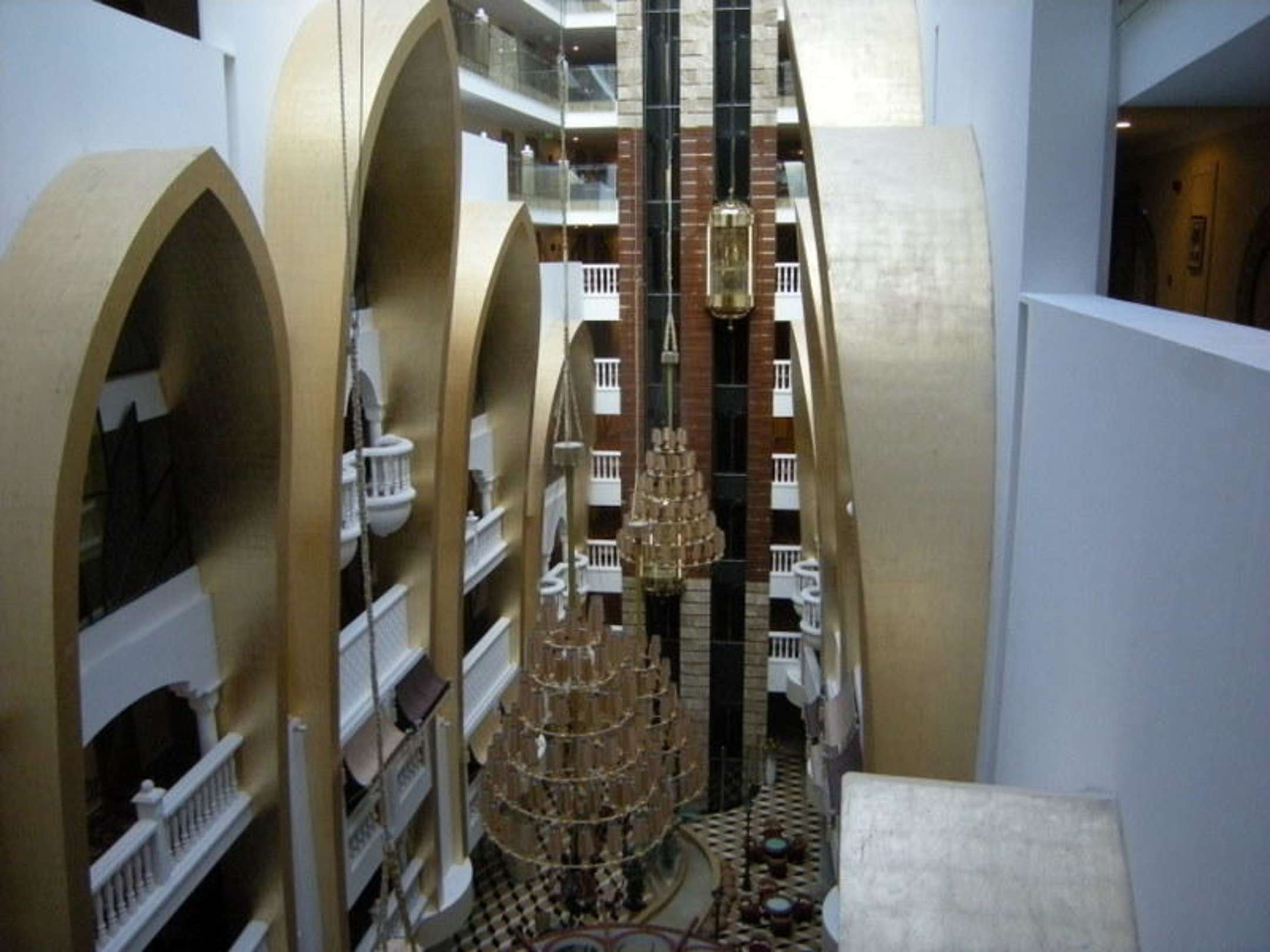 Blick vom Aufzug in die Innenlobby