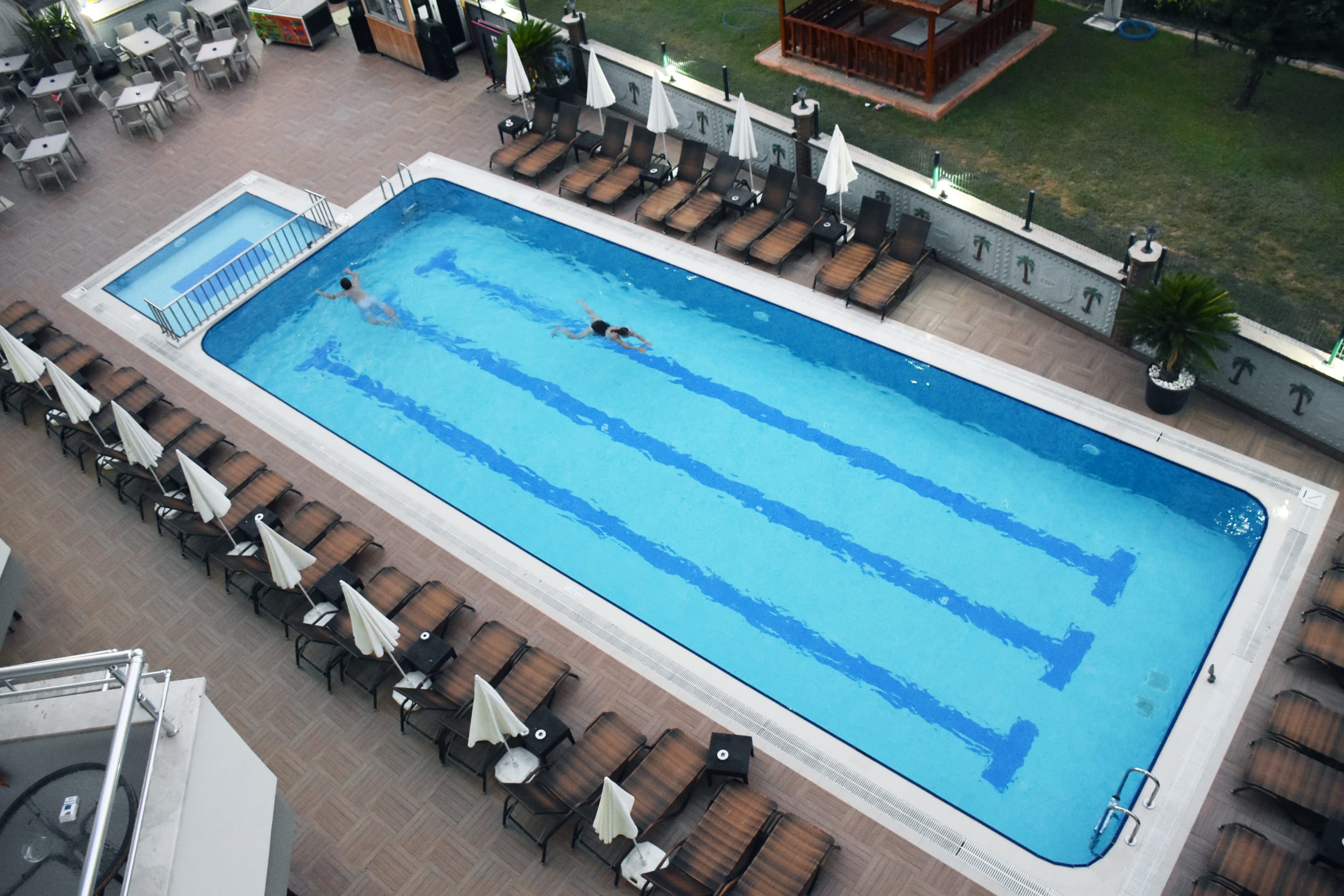 Blick aus dem Zimmer auf den Pool