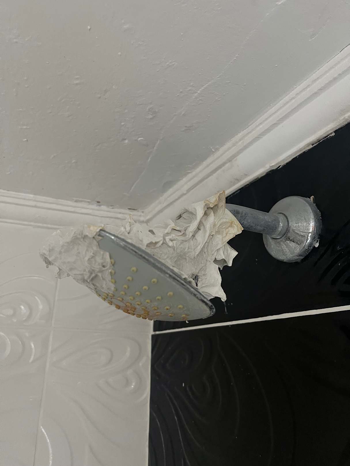 Toilettenpapier Kot am Duschkopf