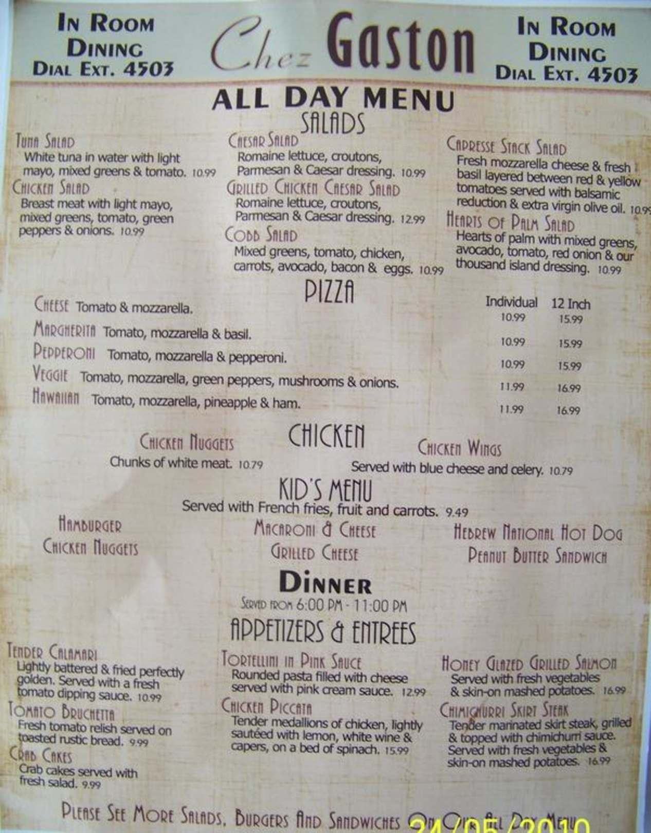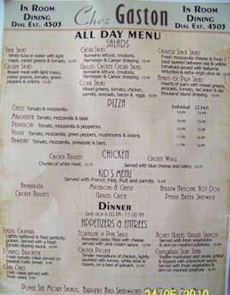 Speisekarte "In Room Dining"