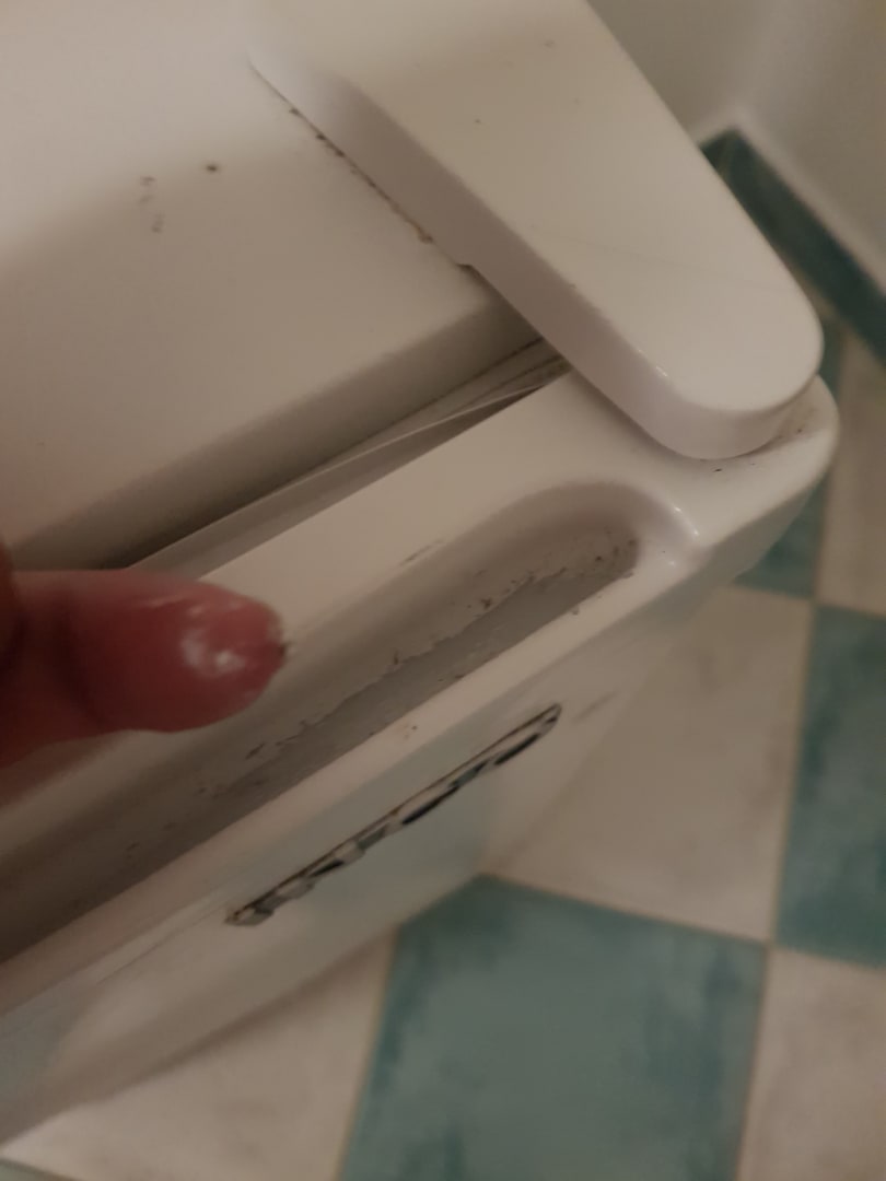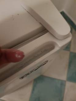 Der wohl nie gereinigte Griff am Kühlschrank, der nie befüllt wurde...
