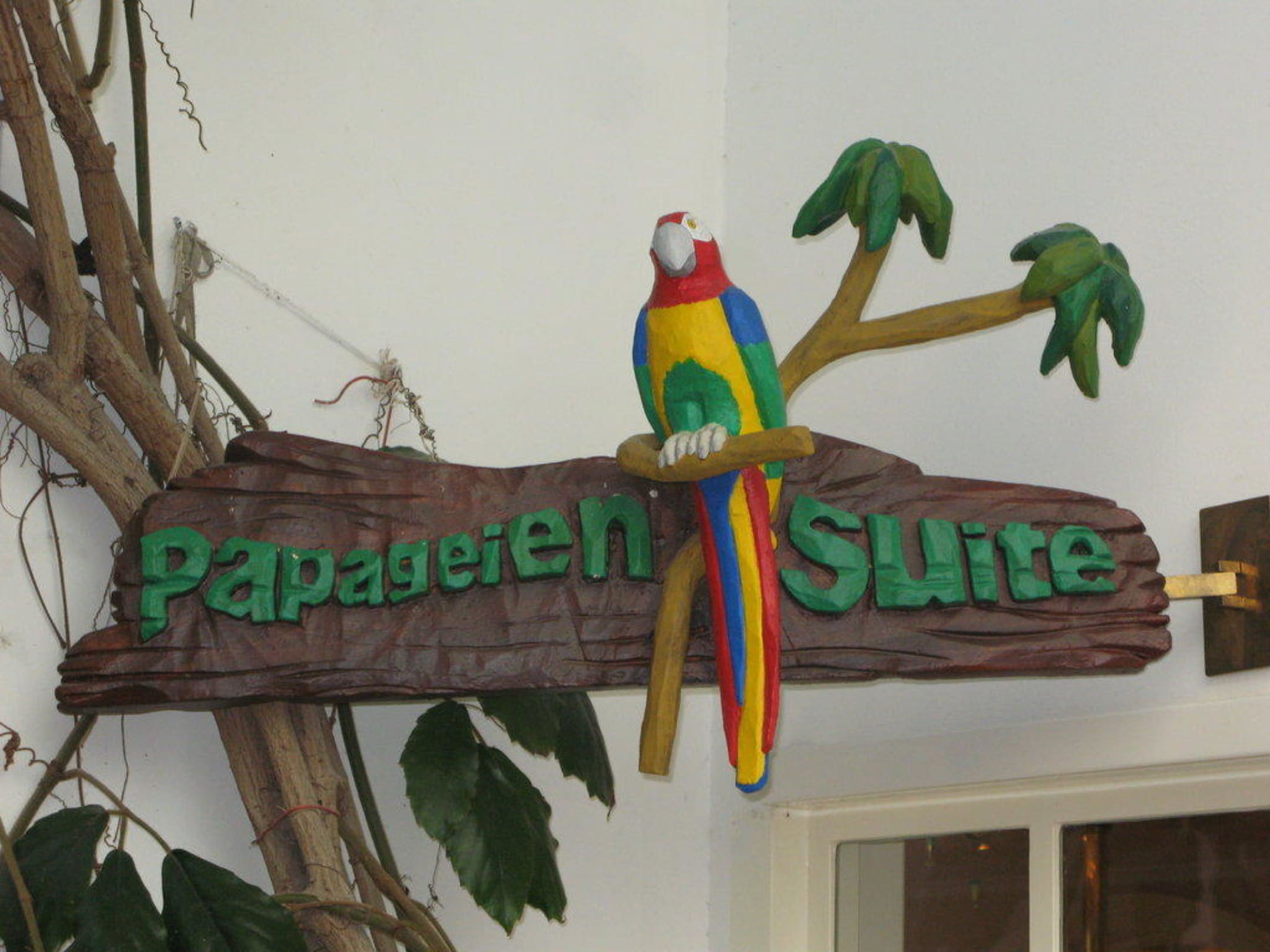 Zwei gesprächige Papageien wohnen dort