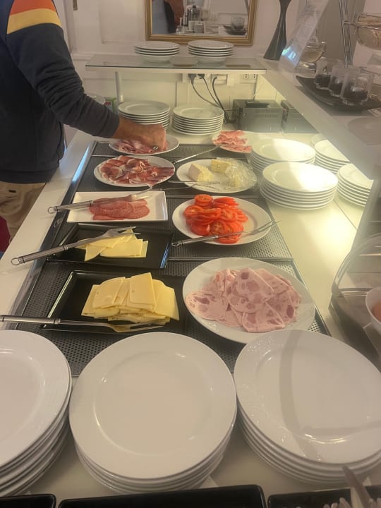 Wurst Käse Tomaten Schinken - gestapelt auf Tellern