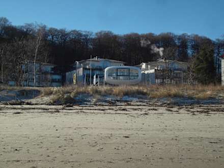Blick zum Hotel - mit ehemaligem Rettungsturm - heute Hochzeitspavillion