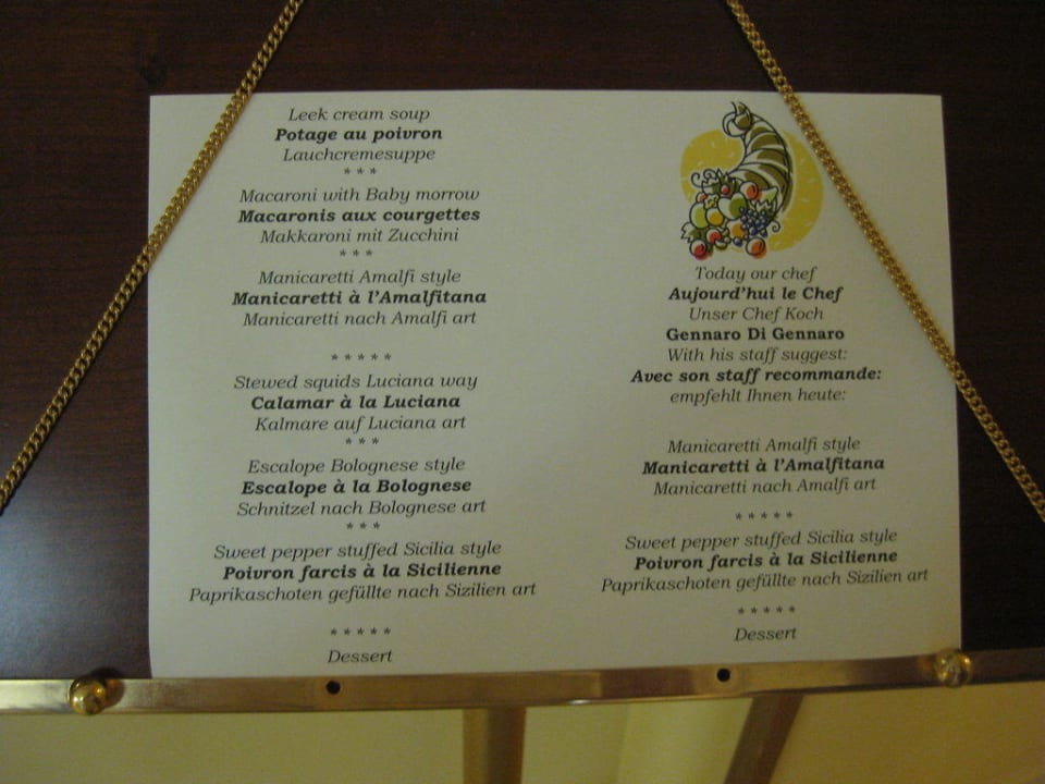 Abendmenuekarte an der Rezeption