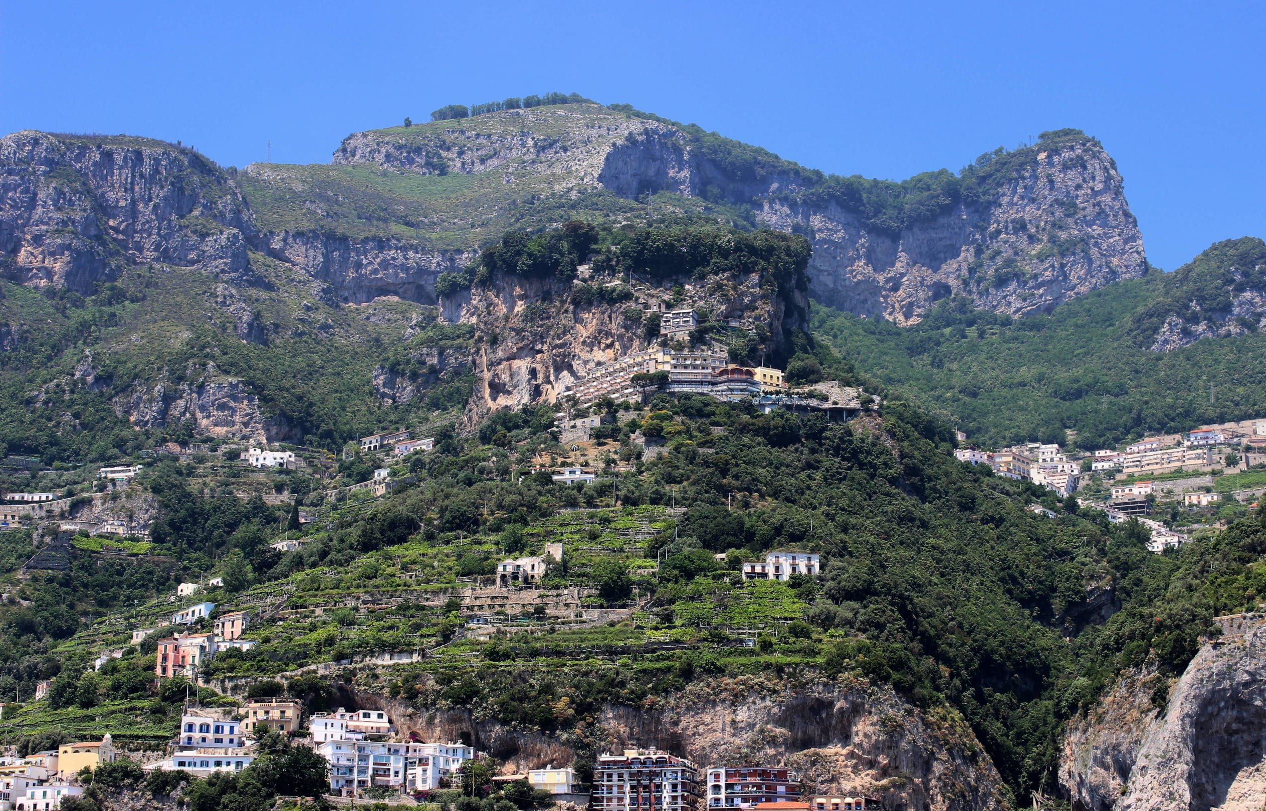 Das Hotel, in der Bildmitte oben, vom Schiff aus gesehen.