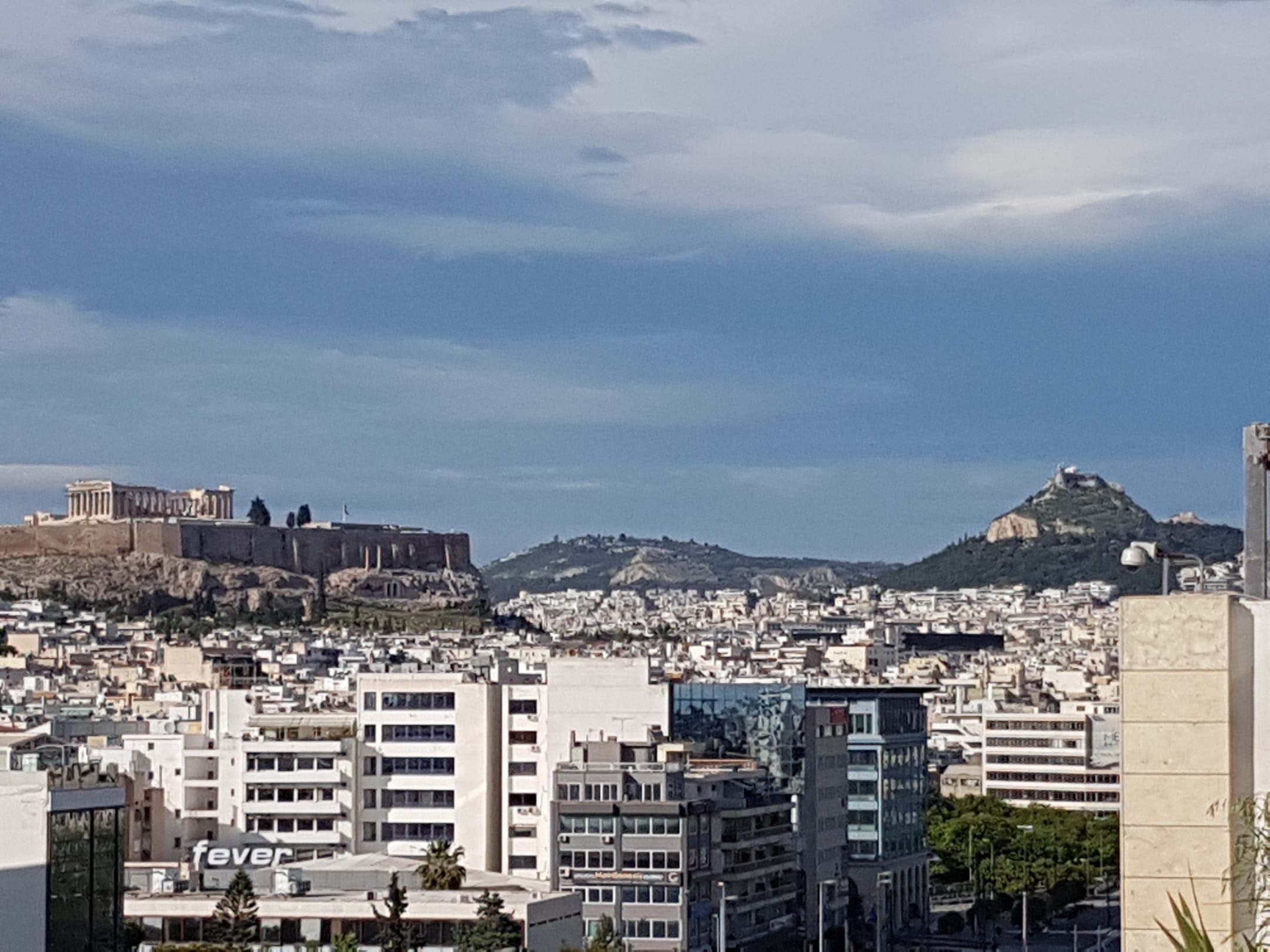 Blick vom Hotel auf die Akropolis und den Lykavittos-Hügel