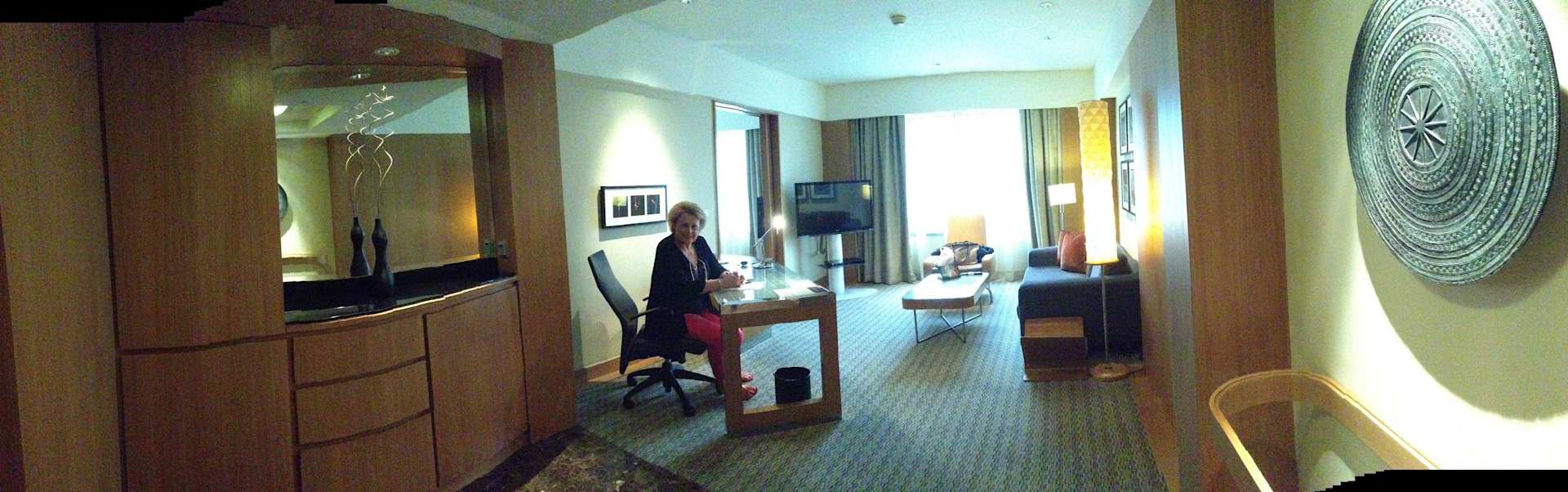Panoramic view of sitting room of suite
