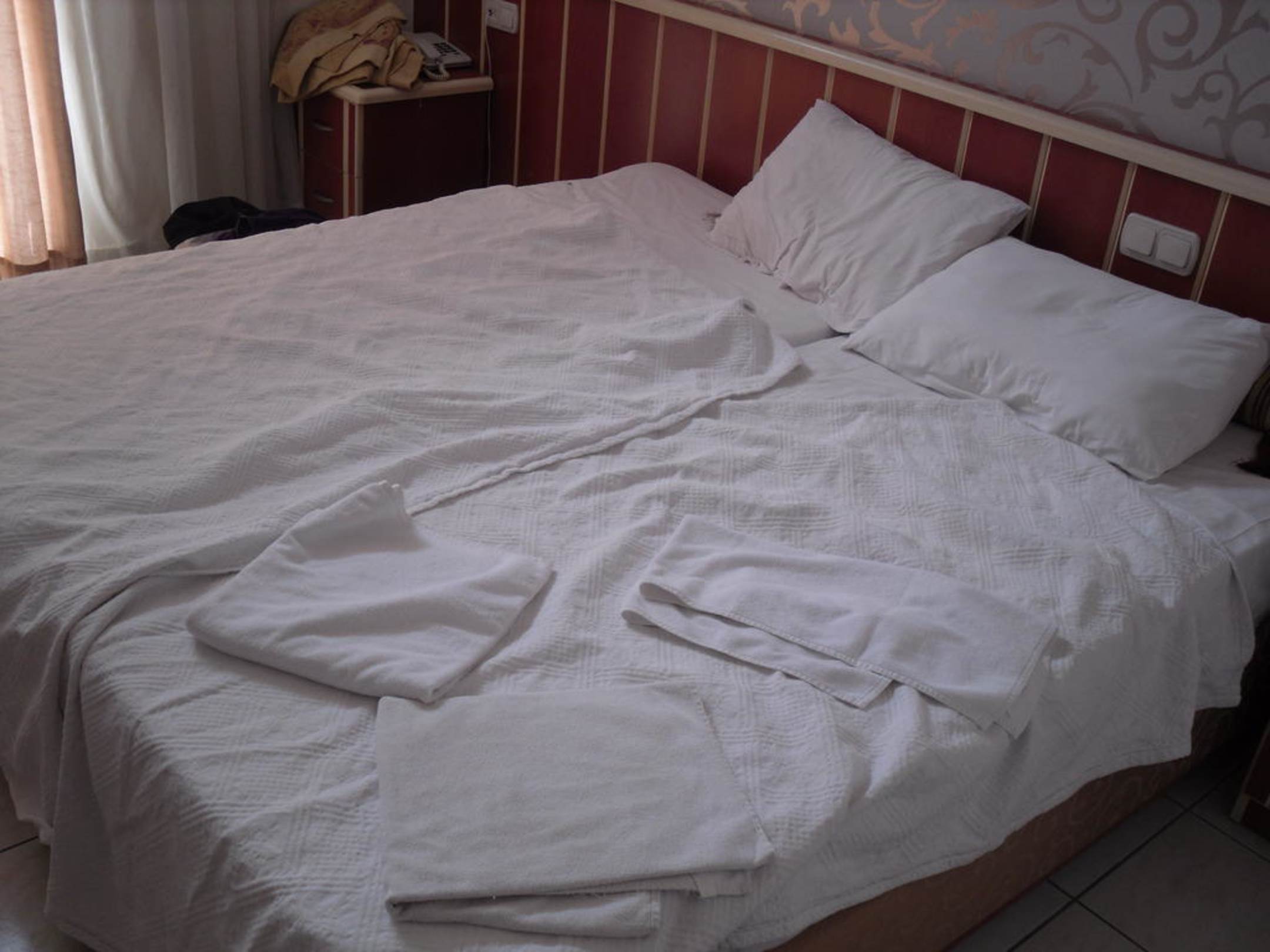 so oder noch schlimmer sah unser Bett täglich aus, nachdem die Zimmermädchen drin waren