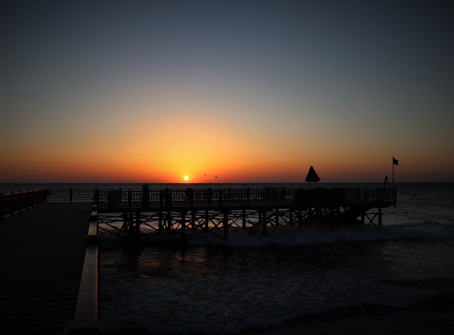 Sonnenaufgang mit Steg zum Korallenriff