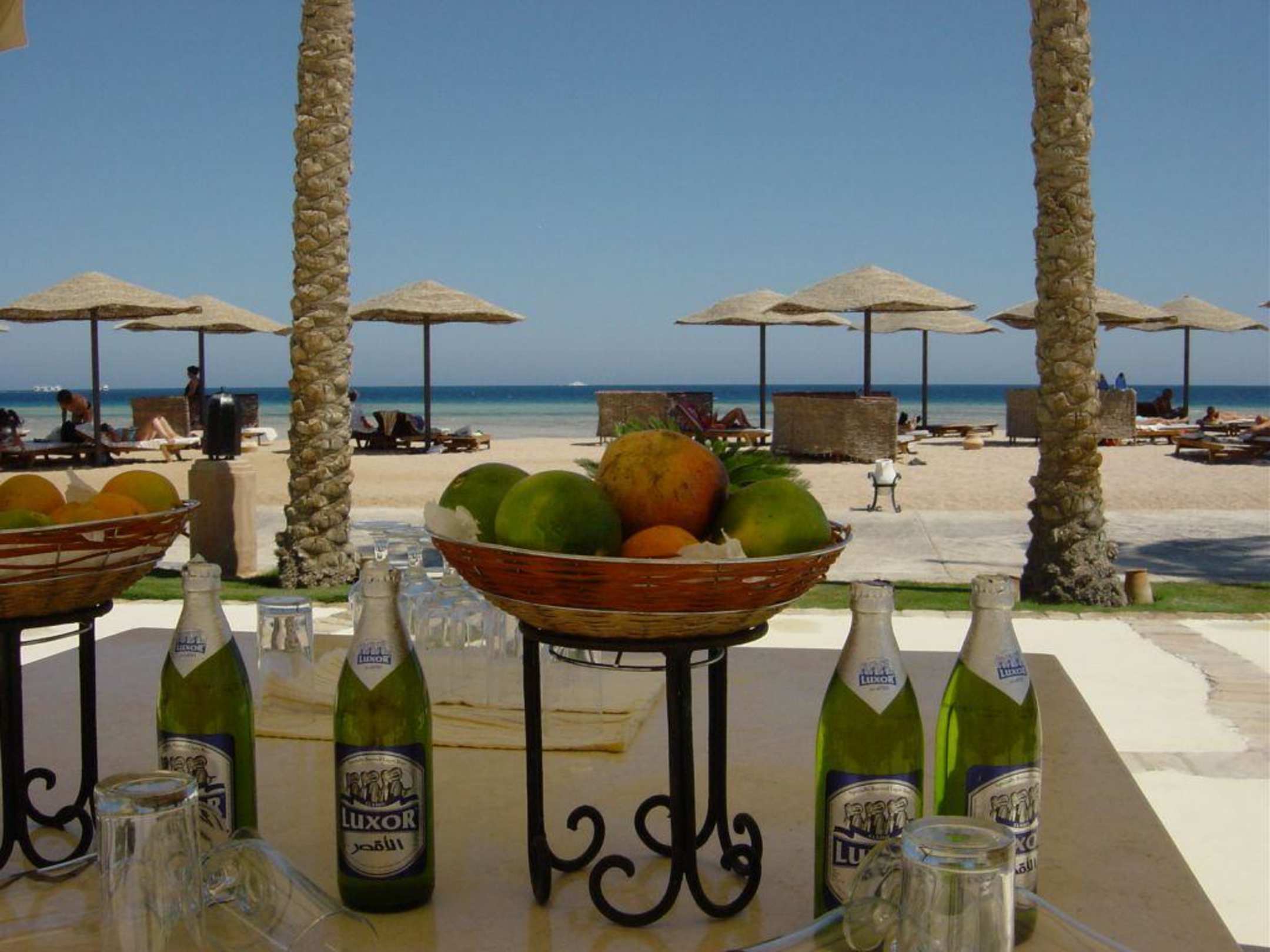 Hol`mir mal `ne Flasche Bier sonst Streik ich hierBlick vom Lagoon-Restaurant auf das himmelblaue Rote Meer.