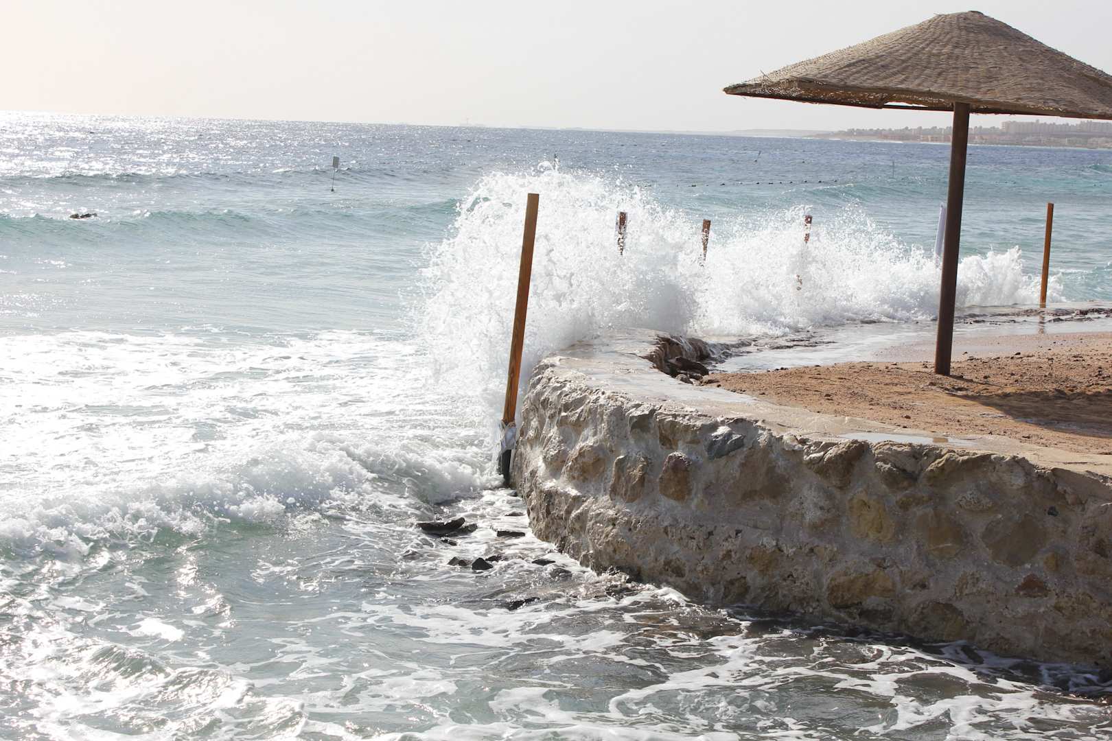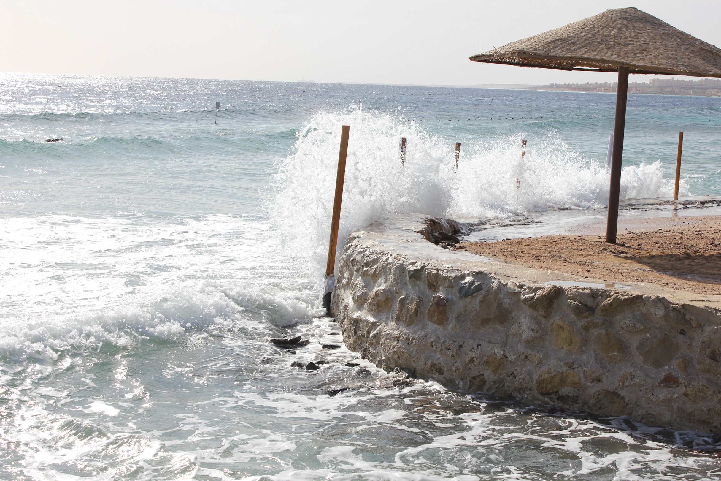 Im Winter kommt es doch auch mal zu stärkeren Wellenbildungen,da die Windstärke öfters 5-6bft beträgt und die Brandung schon mal über die Strandbefestigung schwappt.