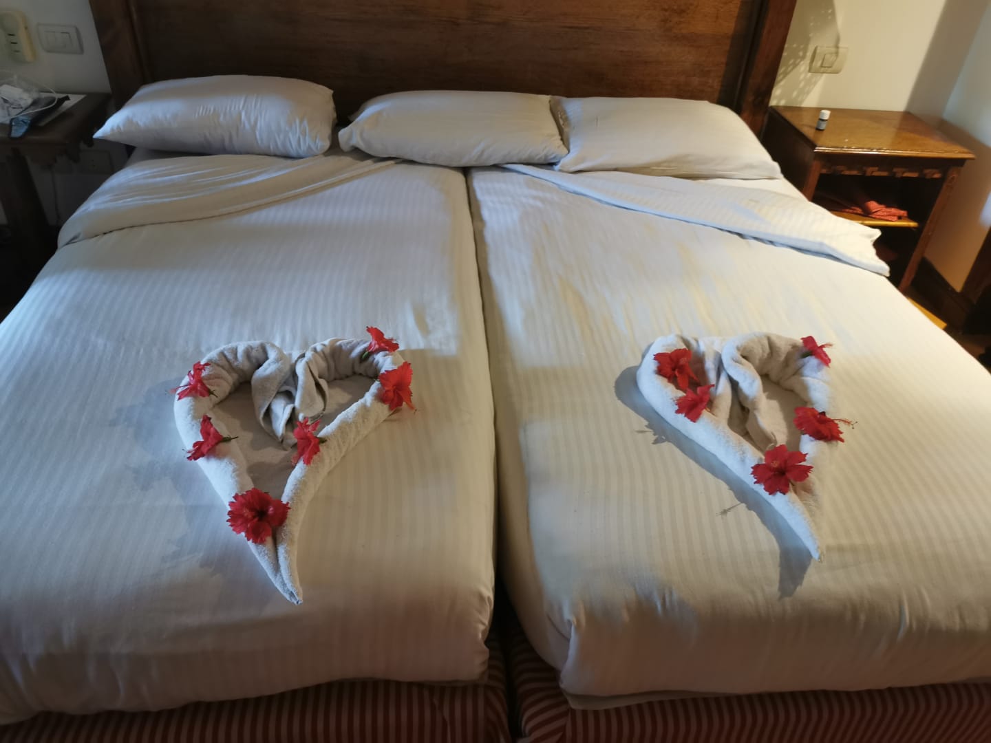 Unser Zimmer mit schicker Deko auf dem Bett